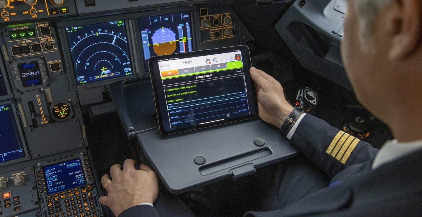 Le digital a fait son entrée dans le cockpit ! Aujourd’hui, les pilotes s’appuient sur des tablettes électroniques, compactes et polyvalentes, qui regroupent toutes les informations nécessaires. Cette avancée marque une véritable révolution dans le monde de l’aviation.